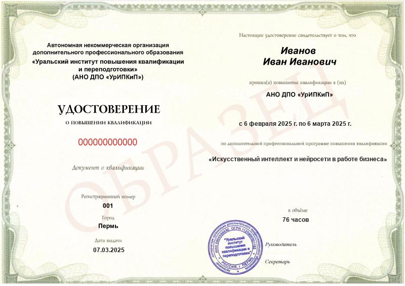 Заполненные образцы выдаваемых документов есть в описании учебных курсов и на странице «Лицензия. Документы», а также на главной странице официального сайта АНО ДПО «УрИПКиП».
