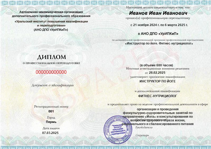 Инструктор по йоге. Фитнес-нутрициолог (680ч)