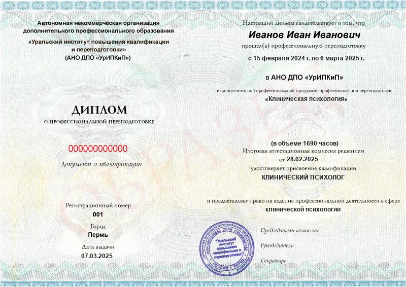 - Образец диплома о профессиональной переподготовке.