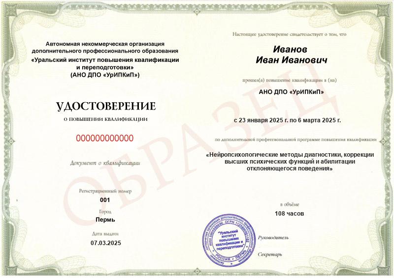• Повышали квалификацию в АНО ДПО «УрИПКиП» – вам будет выдано удостоверение.